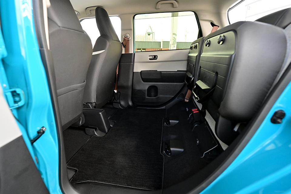 後席を倒したり、座面を跳ね上げたり、荷物に合わせて自由にアレンジできるので、買い物帰りの荷物も、週末のアウトドア用品もラクラク積めます。